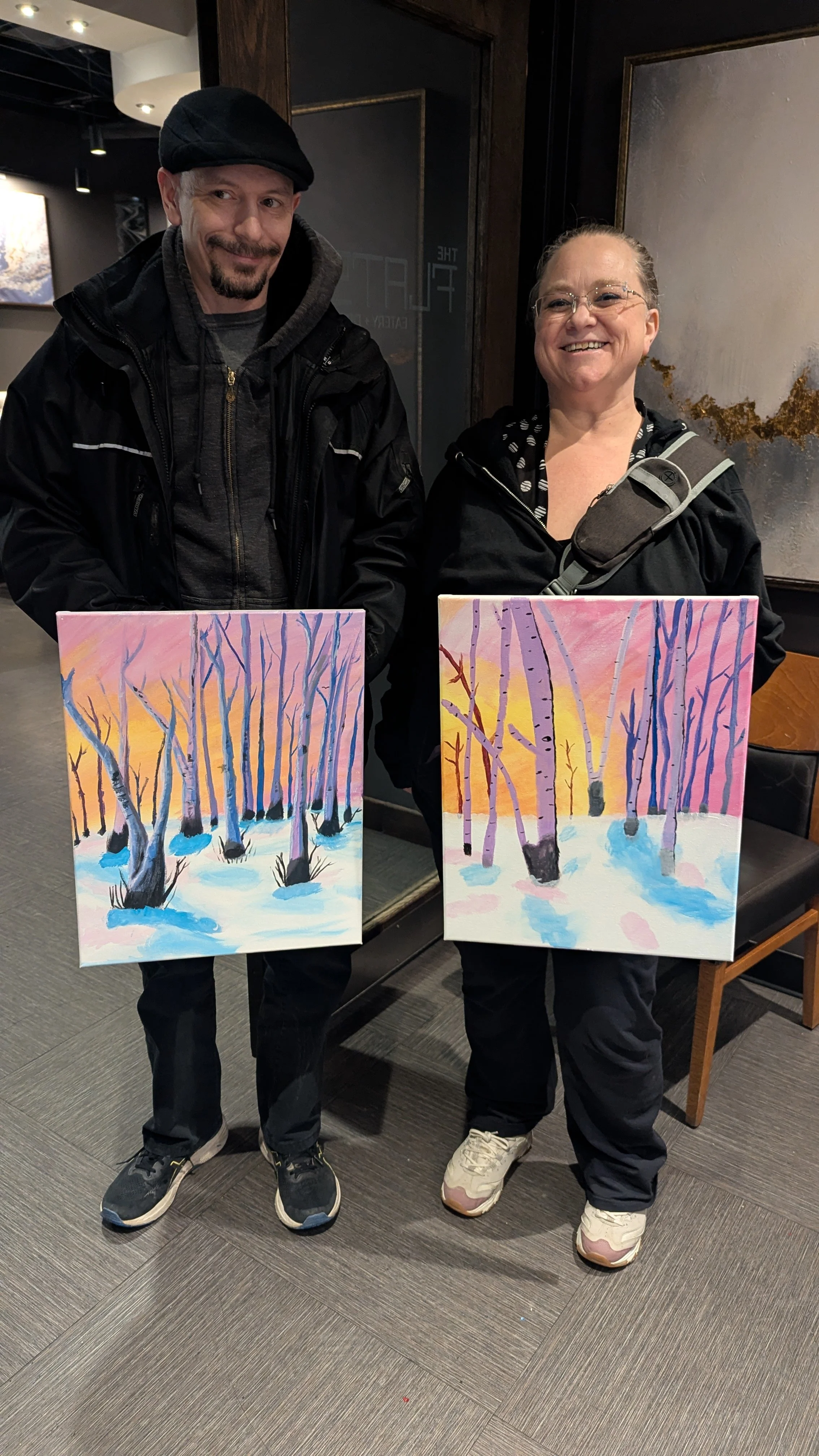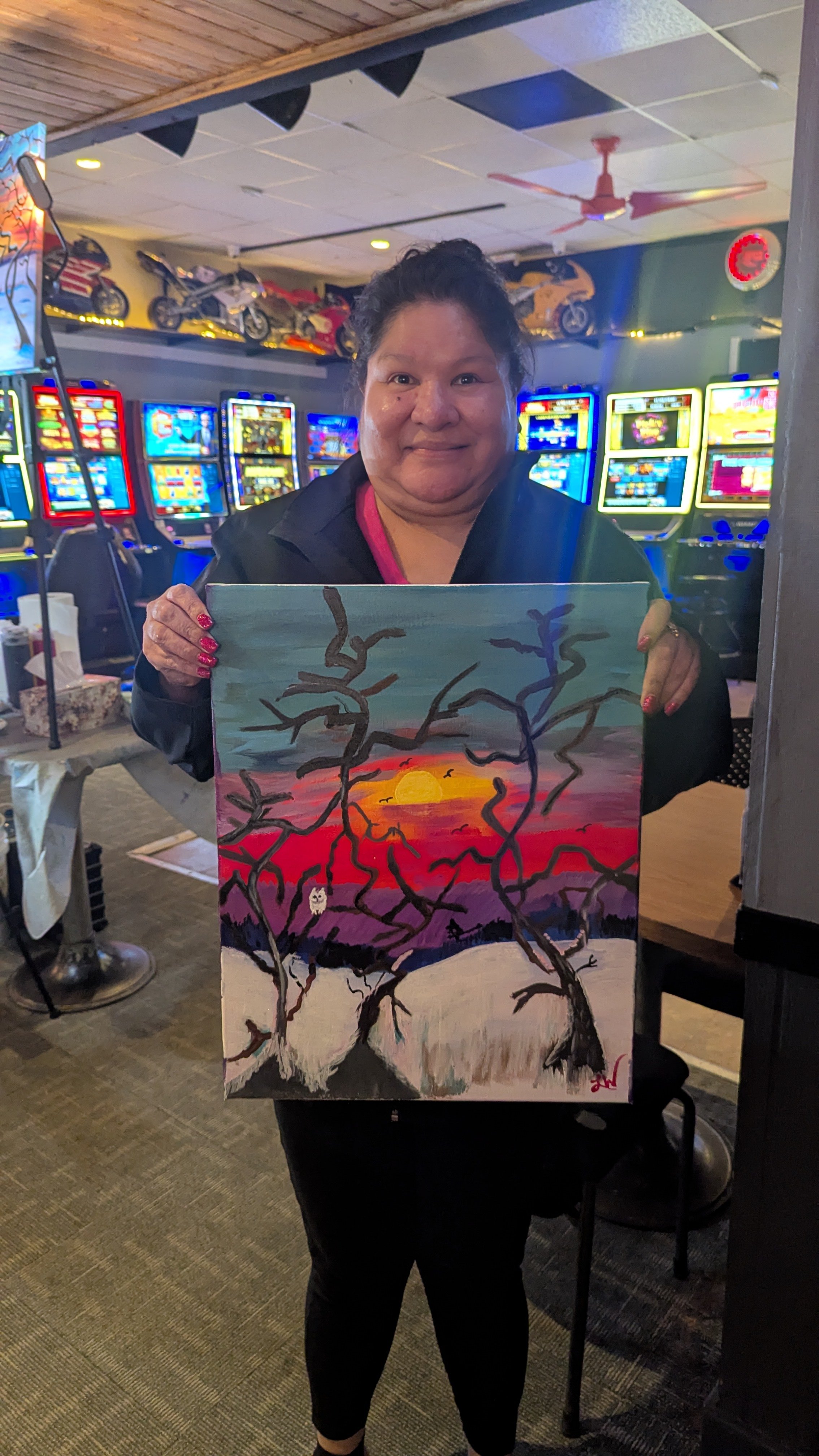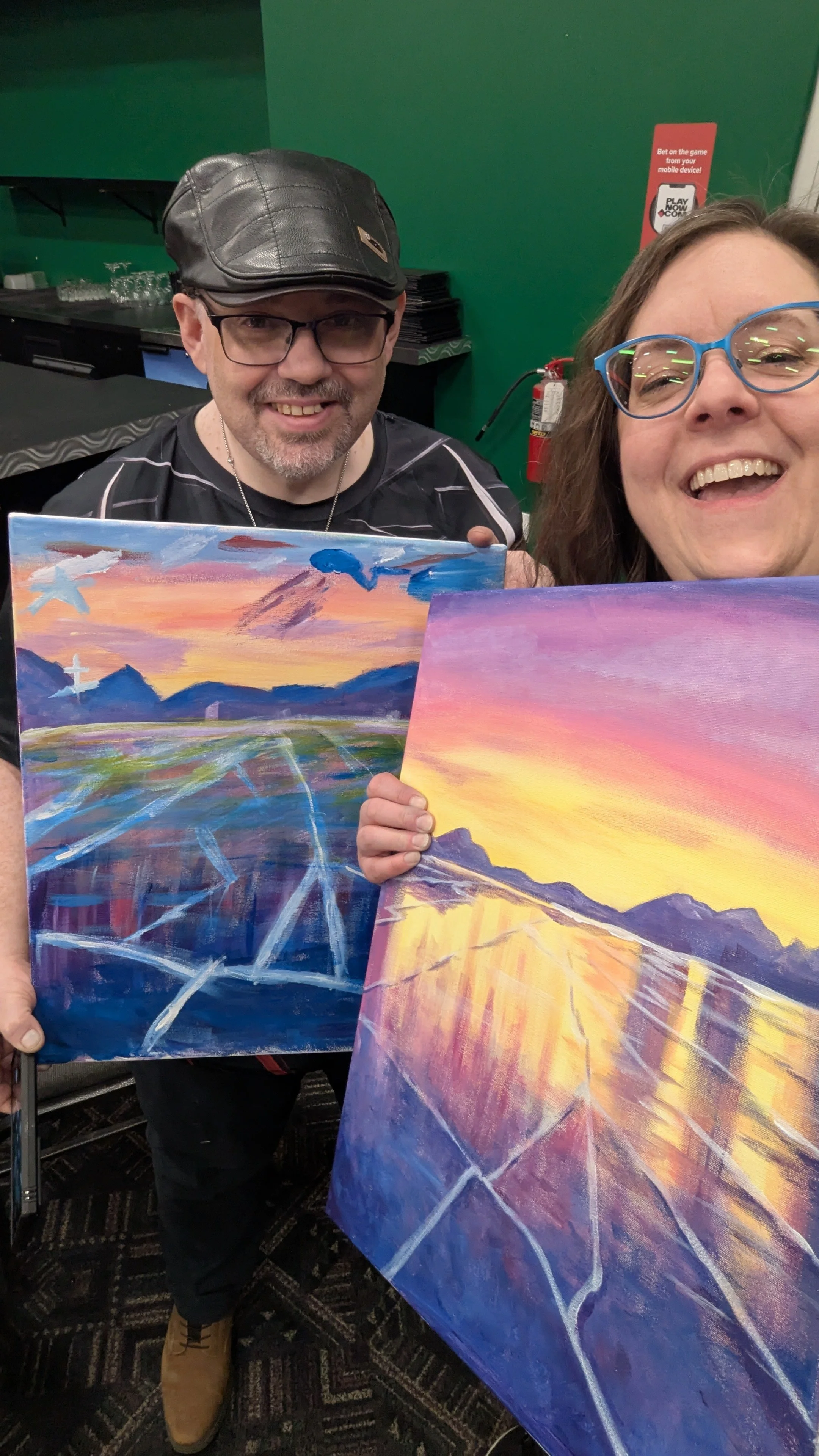 As a graphic designer of 30 years and a musician for longer, creativity is at the core of who she is. Oil painting has become a favorite and she strives to grow in her craft. She has spent time outdoors capturing the beauty around her on canvas over many summers. She enjoys encouraging others in their pursuit of creativity and enjoys teaching group paint workshops. Melanie’s goal is to push herself more each year to create new and improved works of art inspired by the beauty of Saskatchewan and Canadian landscapes. More recently she has begun experimenting with portrait painting too! Melanie takes on graphic design projects when she can and ultimately works full-time leading Paint Nite events and doing commissions.
