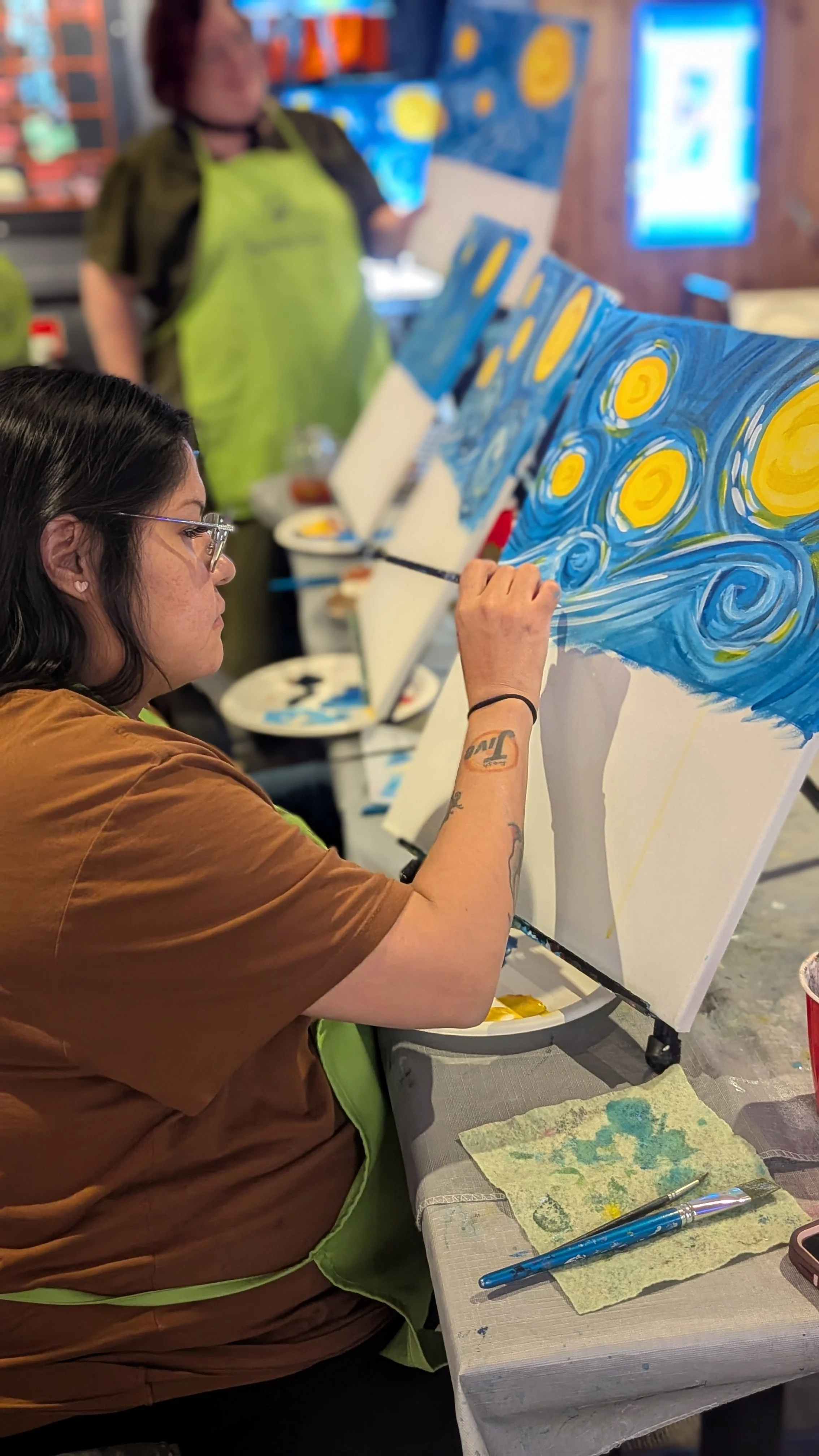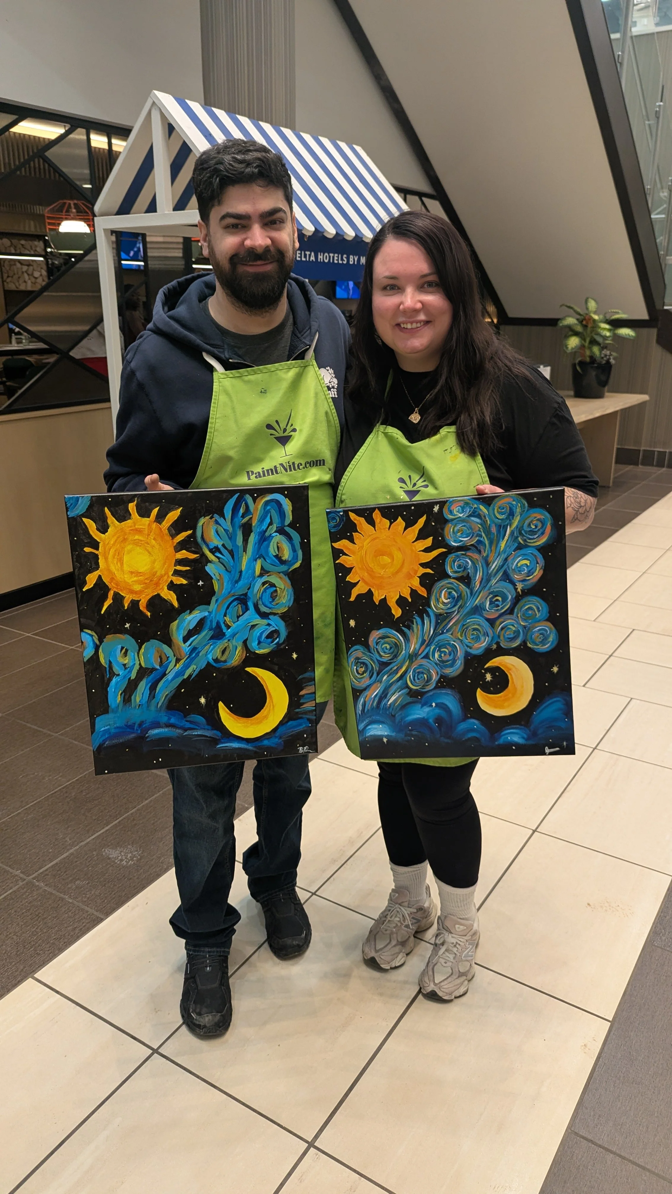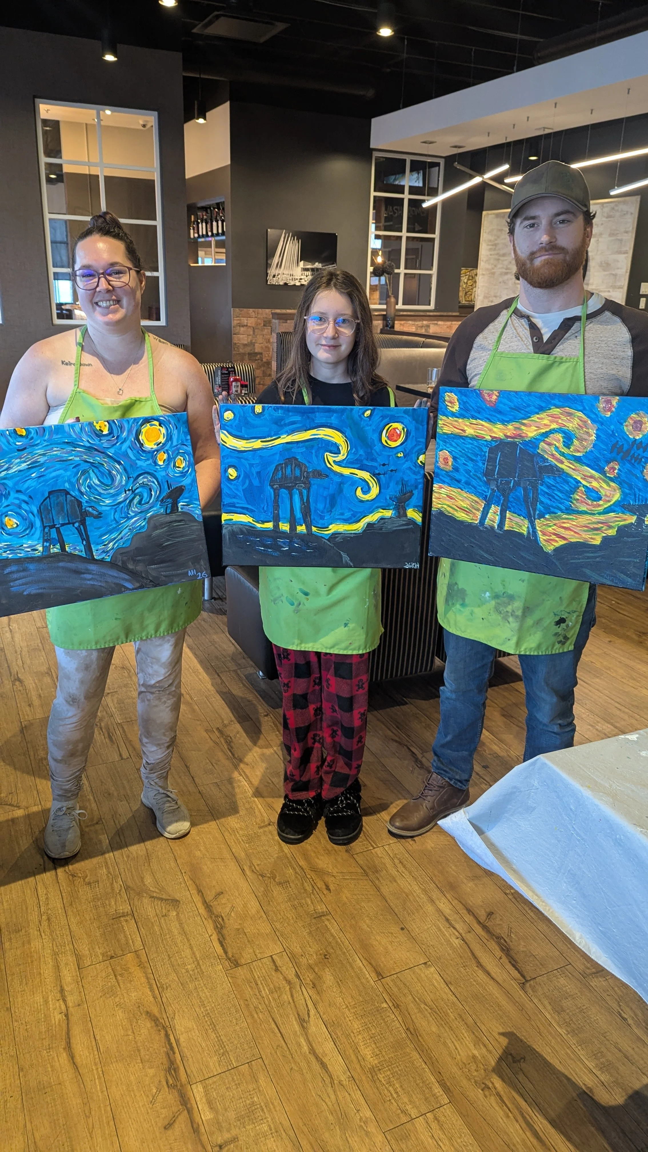 PaintNite is a unique experience. Enjoy drinks and delicious food while having fun with paint. This is not an art class. You’ll learn a few tricks with step-by-step instructions and get creative, colour outside the lines, enjoy moving colours around the canvas. It can be relaxing, inspiring, or a good laugh with friends. PaintNite is all about having a good time.